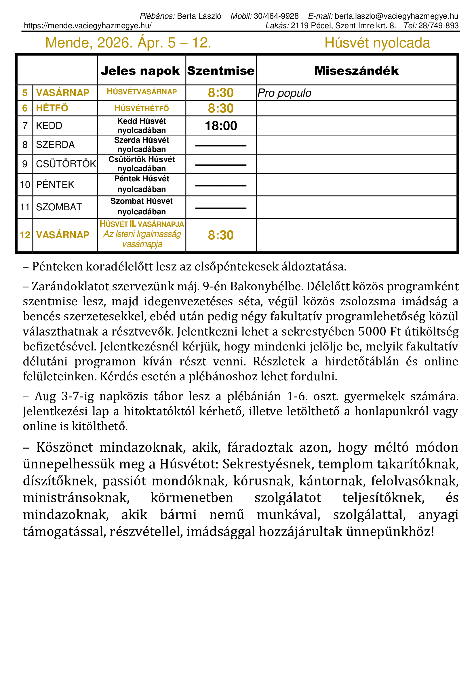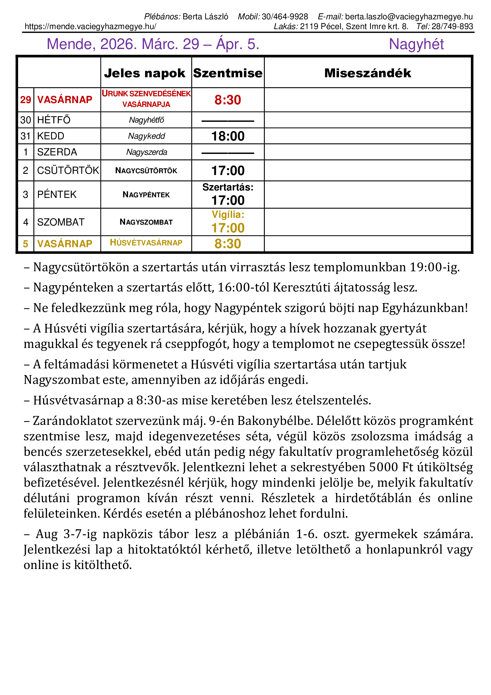 | Vasárnap | 8:30 |
